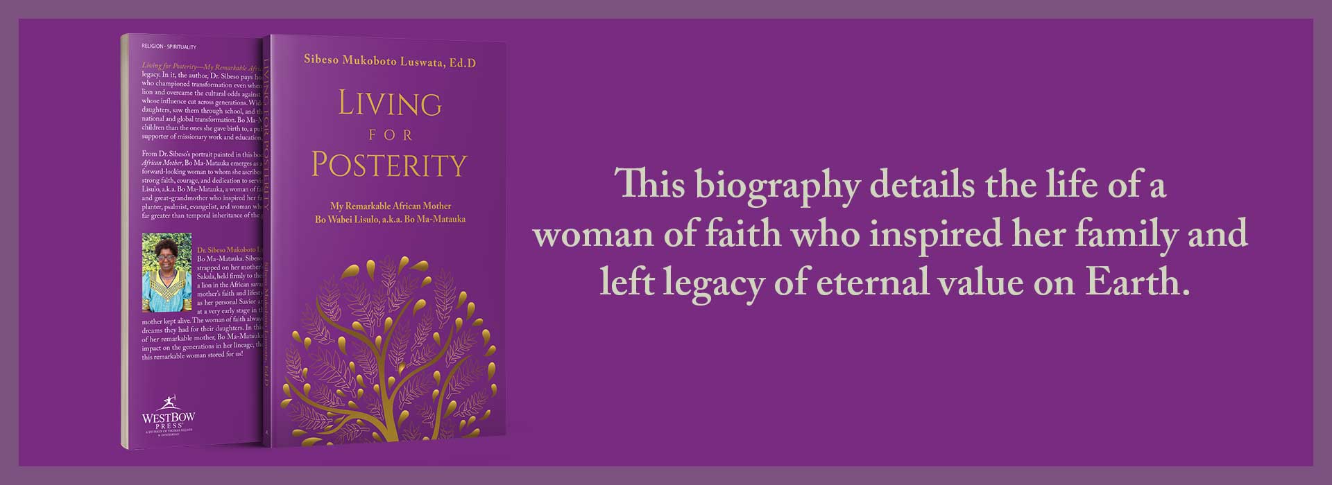 From Dr. Sibeso’s portrait painted in this book, Living for Posterity—My Remarkable African Mother, Bo Ma-Matauka emerges as a courageous, generous, and God-fearing, forward-looking woman to whom she ascribes accolades to for the inspiring work ethic, strong faith, courage, and dedication to serving others. This book is about Bo Wabei Lisulo, a.k.a. Bo Ma-Matauka, a woman of faith, an intentional mother, grandmother, and great-grandmother who inspired her family and left a spiritual legacy, church planter, psalmist, evangelist, and woman who left a legacy of eternal value, which is far greater than temporal inheritance of the physical properties of this earth.